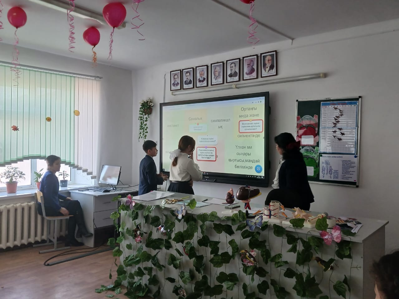 Биология пәнінің мұғалімі Қ.Есіркепова "Ішкі мүшелер жұмысының жүйкелік реттелуі" тақырыбында 7-сынып оқушыларына ашық сабақ өткізді. Сабақ мақсаты: вегетативті жүйке жүйесінің қызметін сипаттау. Іс-шараның келесі кезеңінде Г.Шалманова "Сабаққа қолданылатын дидактикалық құралдардың тиімділігімен дайындау әдістері" тақырыбында заманауи көрнекі құралдарының жасалу жолдарымен таныстырды. Биология пәнінің мұғалімі Р.Тәжібаев "Қызық екен..." тақырыбында интеллектуалды сайыс өткізді. Аудандық білім бөлімінің әдіскері А.Рысмағамбетова іс-шараны қорытындылады.